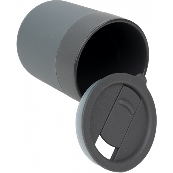 Keraamiline joogitass ALBERT, mahutavusega 340 ml. Tass on varustatud silikoonist kaitsevööga ning kaanega, millel on libistatav joogiklapiga avaus, mis teeb kasutamise mugavaks ka liikvel olles. Saadaval tumehallis ja hallis toonis.