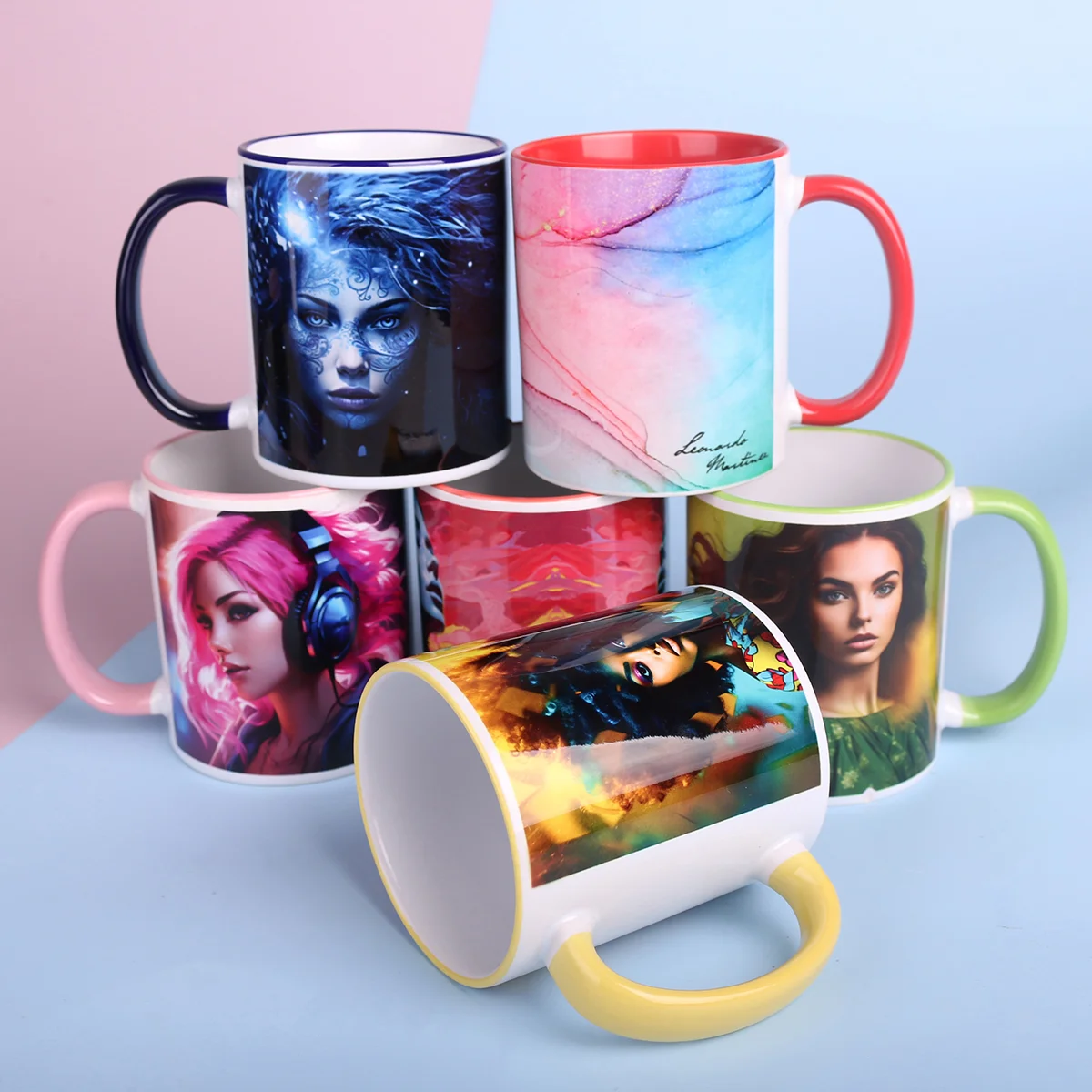 Originaalne sublimatsioonitass erksate värvidega. Tassil on värviline sisemus ja sobivuses toonis sang, mis lisab tootele isikupära. Võimalik trükkida fotokvaliteedis, sobib suurepäraselt reklaamtooteks, kohvikutesse või ärikingituseks.