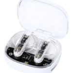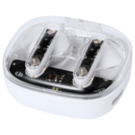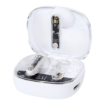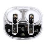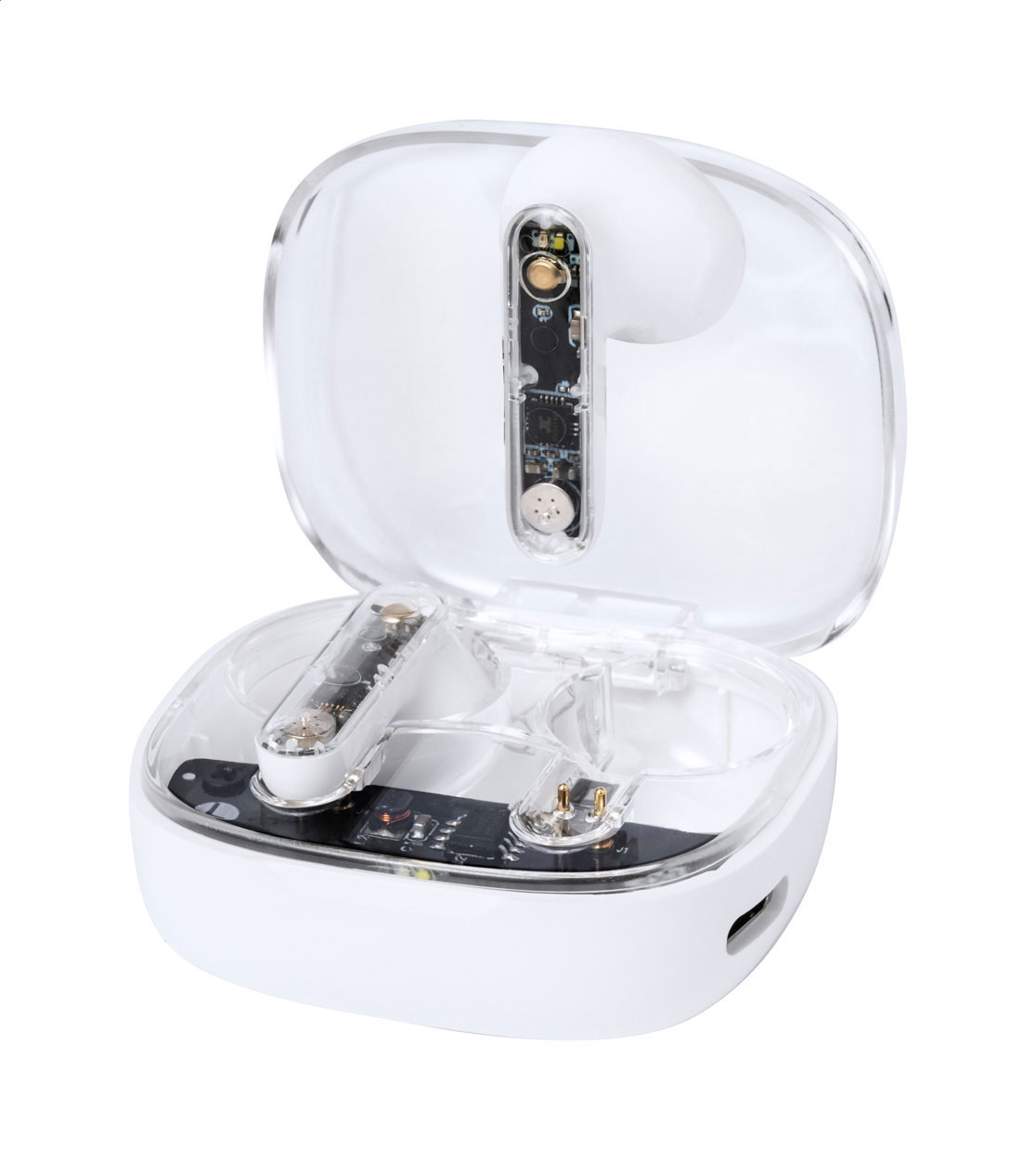 Stiilsed ja pilkupüüdvad poolläbipaistvad juhtmevabad kõrvaklapid, mille korpuses on nähtavad elektroonilised komponendid. Komplektis on samas stiilis poolläbipaistev laadimiskarp, mis hoiab kõrvaklapid kaitstuna ja alati kasutusvalmis.