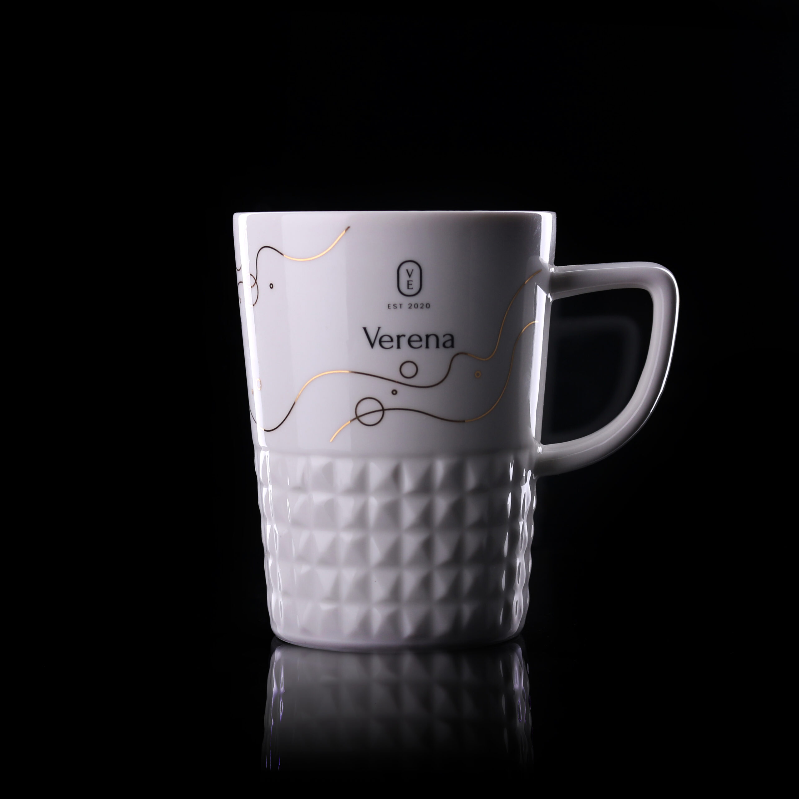 Elegantne ja modernne portselantass, mis on loodud silmapaistvate ja originaalsete disainide esitamiseks. Unikaalse iseloomu annavad eriline sang ning tassi välispinna geomeetrilised reljeefsed vormid. Ideaalne valik brändidele, kes soovivad eristuda ja jätta eksklusiivne mulje.