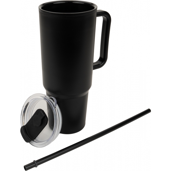 Kahekordse seinaga XXL plastikust joogitass mahutavusega 1200 ml, praktilise kandesanga ja eemaldatava joogikõrrega kaanes. Hoiab joogi soojana kuni 1 tund ja külmana kuni 1,5 tundi. BPA vaba ja sobib hästi nii igapäevaseks kasutamiseks kui ka reklaamkingituseks.